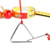 - PRODUCT DETAILS - Materials: Metal and Wood. Dimensions: (L) 5.75” x (W) 5.75” x (H) 1.5”. Toddler Instruments Recommended for Ages 3 and up. Includes 2 Maracas, 1 Tambourine, 1 Harmonica, and 1 Triangle. Color: Red, Yellow, Orange, and Green.