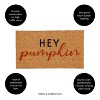 Welcome everyone from family to trick-or-treaters to the home with this coir mat. It features the simple but sweet message "Hey Pumpkin". Crafted from coco husk fiber, this eye-catching mat is natural and eco-friendly. Ideal for high traffic areas, it traps dirt and debris to prevent messes from being tracked into homes. Designs are printed directly on the mats with fade-resistant dyes. Since the mat is crafted from natural coir, some shedding is to be expected. Shake off excess fibers or use a soft brush to gently sweep.