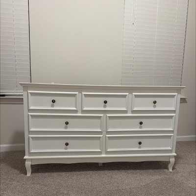 Heynemo Dresser for Bedroom, Modern 7 Drawer Dresser with Solid Wood Legs and Painted Finish, Ideal for Nursery, Living Room, Hallway White