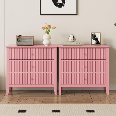 Heynemo Pink 3 Drawer Dresser Set of 2, Painted 30 Inch Tall Wood Nightstand with Storage, Wide Modern Chest of Drawers with Ball Bearing Slide