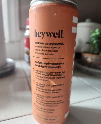 Hey there, we are heywell. We make function-forward sparkling waters that help you meet the demands of modern life. We created heywell to be a simple invitation to a new movement for modern wellness, where small steps can add up to something big. Made with adaptogens, antioxidants, herbs and organic caffeine to support extra energy, immunity, focus, hydration or occasional stress. With heywell function meets flavor: Our sparkling waters are a balance of tart and sweet, low in sugar and calories and made with premium plant-based organic ingredients. Non-GMO, Made with Organic Ingredients, Gluten Free, Dairy, and Vegan. Best of all, they taste delicious, like sparkling water with a splash of juice. Cheers!