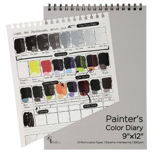 The diary is spiral-bound, acid-free, and the specially designed pages can be removed from the spine to work on. Stack different removed pages to create paint swatch cards for color theory! Once completely dry, you can reinsert the pages into the diary. Each page will stay protected by the glassine interleaving sheets that keep your color charts from sticking together. Another bonus is the ability to pull out an individual color chart when you need to refer back to particular colors. Each sheet is 9x12 from the perforated edge, with tons of room for notes and descriptions. The top of each color chart has a line for writing the paint brand, date, your name, or an assignment title if it's for a class. The diary page layout gives five rows of 8 rectangles, separated by two lines for notes and labeling. Each rectangle swatch box measures 1" x 1.5" and has a bold black horizontal line halfway from the top. This deliberate line is there to show transparency or separate half-tones for each color. Creating a color diary collection gives you intimate knowledge of how each color will perform, from a glaze to a mass tone. As a painter, you know how valuable swatch and color mixing information is. Think how much easier it will be to plan your paintings with all that important information in an organized format! The Painter's Color Diary is exclusive to Jerry's Artarama and is essential for every painter who wants to become a better colorist. We recommend this color diary to any artist that wants to enhance their color, mixing, tinting, and shading comprehension.