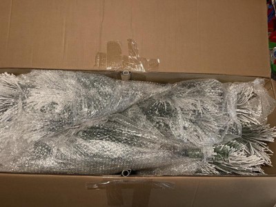 [This review was collected as part of a promotion.] I am so happy with this gorgeous Christmas tree! Unboxing it, each tier is nicely separated and ready to put together. Very easy set up and lights connect right away. Only time consuming part would be the fluffing of the branches, I would recommend wearing long sleeves. The tree itself is absolutely stunning, with a perfect height for our home! The white fake snow is so pretty and adds such a wonderful authentic holiday feel to the whole room! I would most definitely recommend this tree.