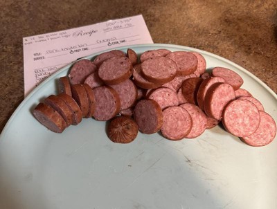 Bought today. Opened it as soon as I got home all excited. When I got to the last summer sausage it looked different and turned out it was bad. They’re all suppose to be the same kind so it’s not that it’s a different kind. Very disappointing.. I buy one of these every year and this makes me not want to continue with that.