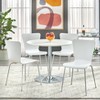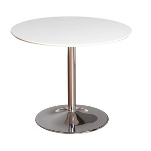 Give your décor Mid-century Modern appeal with the stunning Hillboro Dining Table from Buylateral. Simple clean line design is accentuated with the chrome metal pedestal base and contrasting white top. Ideal for your kitchen or dining space, the round table style is sure to invite conversation while relaxing with family and friends, seats up to four (4).