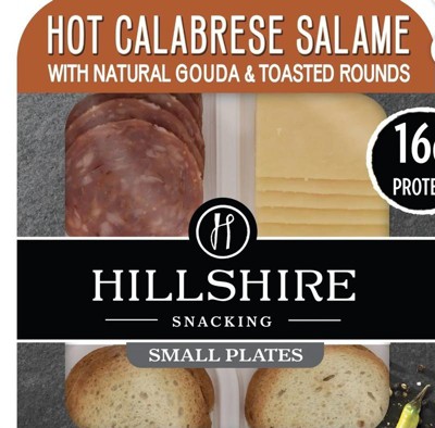 Enjoy a grownup twist on snack time with Hillshire Snacking Small Plates, Hot Calabrese Salami Deli Lunch Meat with Gouda Cheese. This hot Calabrese salami mini deli platter features chef curated ingredients and flavors, such as fiery red chili pepper and cured salami, for a truly elevated meat and cheese snacking experience. Try pairing with a full bodied brown ale to enhance the flavors of the spicy Calabrese salami and creamy Gouda sliced cheese plate. Perfectly portioned for snacking on the go, this hot Calabrese salami snack food plate has 16 grams of protein in each ready to eat food serving. Peel open this snack pack of cheese, crackers and meat for an instant charcuterie plate. Includes one 2.76 oz package. We’re big believers in a little thing called snack time. To us snacking is not about rushing or mindless eating. It’s about turning a few stolen moments into an elevated celebration that deserves to be savored. We’re here to turn snacking into an occasion, and you’re invited.
