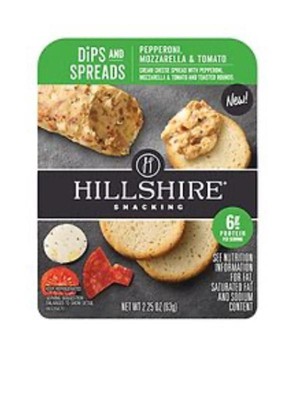 - One 2.25 oz tray of Hillshire Snacking Dips and Spreads Pepperoni, Mozzarella & Tomato