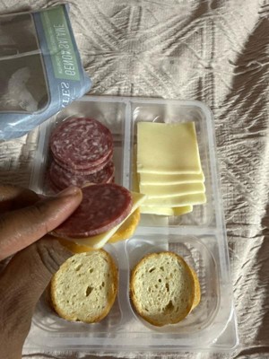 I love this I used to always get lunchables whenever I go to the store with my kids but I saw this and wanted to give it a try I love the herbal crunchiness of the crackers and the chewy taste of the salami and I love cheese this is a great flavor and texture combo one of my favorite new snacks