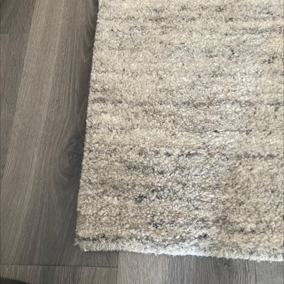 This is a nice rug for the price. It is soft to walk on on. The color was darker than I expected. I would describe it as oatmeal with gray, tan, and black striations.