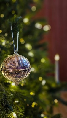 Decorate your Christmas tree in style with this Hinged Glass Ornament from Hearth & Hand™ with Magnolia. Made of glass, this transparent Christmas ball ornament features a unique metallic band at the center, which opens up to place small decorative items inside. You can fill it with faux leaves, flowers, berries and more for a festive look, and the ornament also features a top hanging loop for easy placement on your tree.