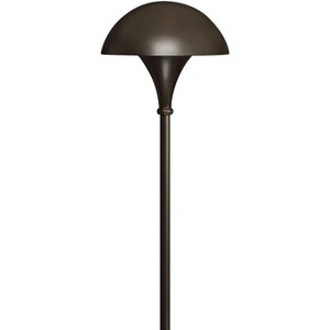 A contemporary silhouette and rich finish combine to perfection on this mushroom landscape path light. It features die-cast aluminum construction with a bronze finish that never goes out of style. This light is complete with a clear acrylic lens for true, bright illumination of pathways and garden features.
