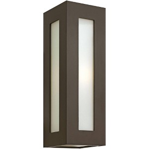 The Dorian collection features sleek, modern style outdoor lighting designs to improve your home's outdoor spaces. This aluminum outdoor wall light features a contemporary bronze finish frame with clear painted white glass panels to evenly diffuse light. From Hinkley.