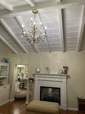 This was the one chandelier that my husband and I agreed on. It is beautiful and gives off great light, we added a dimmer which gives us much options. It was a little tricky to assemble but not impossible.Two of our crystals were broken and the company sent us replacements immediately. Would highly reccomend this light and this company.