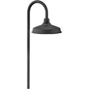 Inspired by industrial lighting design, the Foundry collection by Hinkley Lighting combines classic style with modern features. This path lights is for use with low voltage landscape lighting systems and has an arch gooseneck top arm and a wide light with an LED bulb. A great way to create sophisticated curb appeal.