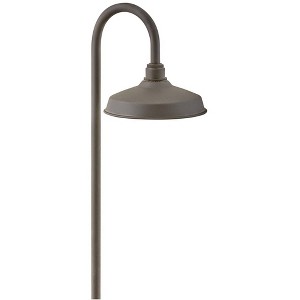 Inspired by industrial lighting design, the Foundry collection by Hinkley Lighting combines classic style with modern features. This path lights is for use with low voltage landscape lighting systems and has an arch gooseneck top arm and a wide light with an LED bulb. A great way to create sophisticated curb appeal.