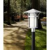 Brighten an outdoor area with this brilliant post mount light design from Hinkley Lighting. The piece features a Mission-inspired look in a bold Titanium finish with inside-sandblasted seedy glass. A great look that's stately and inviting.