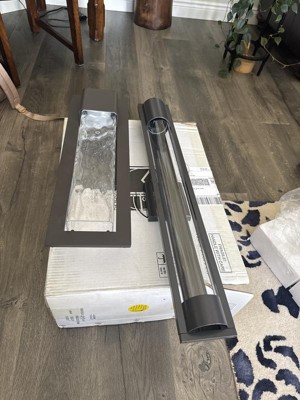- Bronze finish over aluminum construction. Clear seedy glass interior panel. Clear acrylic cylindrical protective shade outer.