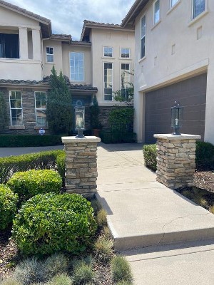I purchased two lights for my stone posts and the large matching light for over my front door then... I purchased the two smaller wall lights for the two other doors to the house. So all match. Clean elegant design. Came perfectly packed and arrived quickly!