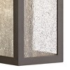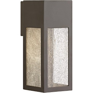 Upgrade your outdoor lighting with this straight-lined modern outdoor LED wall light from Hinkley. It comes in a smooth bronze finish that provides an element of warmth, and has seedy glass panels that add an interesting textured look. Dark Sky friendly, the design directs light down to the ground and pathways, not up into the night sky. Use this energy-efficient LED fixture to illuminate your front porch, back patio, or walkway.
