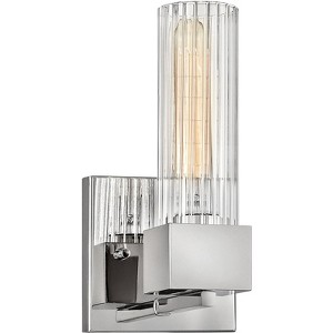 Make a statement about your home lighting with this contemporary ribbed glass wall sconce with a cubed base design from the Xander collection by Hinkley. The design is highlighted by a gleaming polished nickel finish over steel construction that's accentuated by a ribbed clear glass. This modern vintage light is a masterpiece for any space in your home.