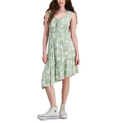 Hippie Rose Womens Floral Print Smocked Tank Dress, beige, Large