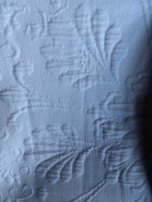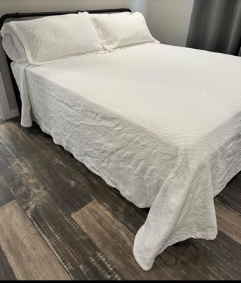 [This review was collected as part of a promotion.] This is really pretty!!! It has a nice weight to it and the pattern and design are A1. Washed well and dried well. If you have a taller bed don’t worry there is extra length. And this white is sooo white!! I wish this came with the pillow cases. But it’s ok I’ll go get them because it’s so white it makes my pillow cases look dirty and dingy.