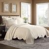 [This review was collected as part of a promotion.] Really nice quality. The bedspread has a nice weight to it, hut it’s pretty thin. It won’t add any warmth on a cold night. It’s also really large. The bedspread pools on the ground on both sides of a queen sized bed. It looks nice though! I love the details and the scalloped edging.
