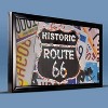 - EYE-CATCHING - Inspired by vintage neon and classic road signs, this vivid piece pairs the iconic Route 66 highway marker with LED marquee lights and license plate imagery.