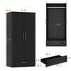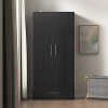 Enhance your bedroom with the Homsee Wardrobe Armoire. This stylish, Black finished piece complements any decor while offering ample storage. Crafted from durable melamine MDF, it's easy to clean and built to last. Behind two doors, you'll find a garment pole and plenty of hanging space, plus a lower drawer for shoes and accessories. Designed for stability and safety, this wardrobe is a reliable and attractive addition to any bedroom.