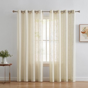 HLC.ME Abbey Faux Linen Textured Semi Sheer Privacy Light Filtering Window Grommet Thick Curtain Panels, Set of 2 - Beige, 54 W x 108 L