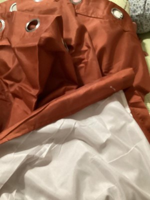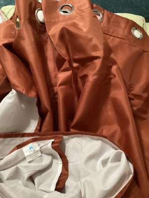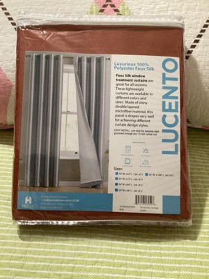I loved the design and style of these curtains. They block out the sun with still letting some light come in the windows but still gives you privacy. They are lightweight and silk to touch. The terracotta orange color is very pretty and not too bright of a color more like a bronze. They were very easy to install and look beautiful.