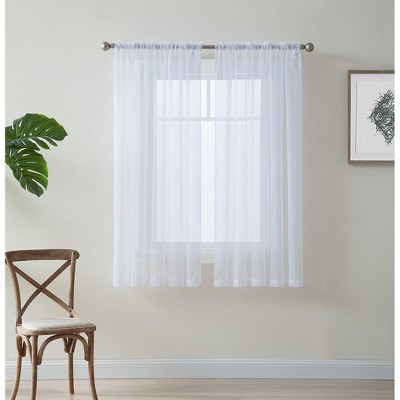 HLC.ME Lauren Semi Sheer Light Filtering Transparent Pocket Top & Back Tab Lightweight Window Curtain Panels, Set of 2 - White, 54 W x 63 L