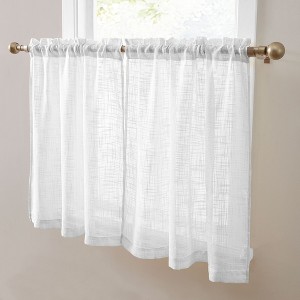 HLC.ME Linda Faux Linen Textured Semi Sheer Privacy Rod Pocket Short Cafe Curtain Tiers, Set of 2 - White, 35 W x 36 L