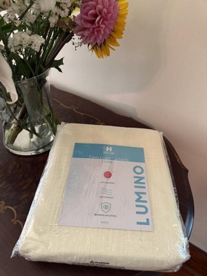 HLC.ME Linda Faux Linen Textured Semi Sheer Privacy Sun Light Filtering Window Rod Pocket Thick Curtains Panels, Set of 2 - White, 54 W x 108 L