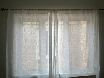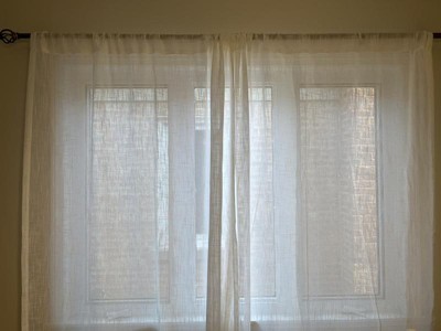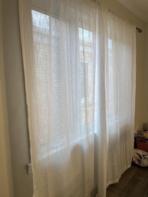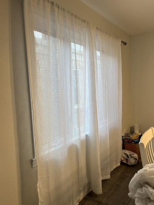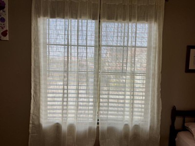 I like the texture of these curtains which allows light to pass through but maintain your privacy at the same time. The fabric is thicker than sheers. These weigh more than sheers also. My issue lies with the length of them. These are definitely shorter than 84” so keep that in mind when purchasing. As of right now for review purposes, I put these up in my bathroom. I may end up putting these in my living room. No issues with the quality at all. The stitching looks great with no loose threads.