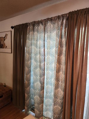 I had high hopes for these curtains to add style to my dining room and to elevate the space and I wasn't disappointed. The pattern alone draws the eye in and added an extra pop to the room and gives the space a elegant apperance. These curtains are known for blocking light, being energy efficient and noise reduction. However, I haven't noticed a huge difference when it comes to noise canceling, but I have noticed the reduction of the sun coming through the curtains.