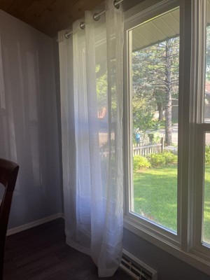 This is a Bullseye product review. I like these curtains. We tried them out on our picture window in our living room and they add a nice touch of elegance to the room. They are light weight and have a nice texture to them. These are sheer curtains so they help let a lot of light in when wanted, but also add just a bit of privacy when closed. I see us using these long term because we enjoy them.