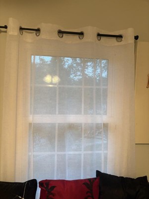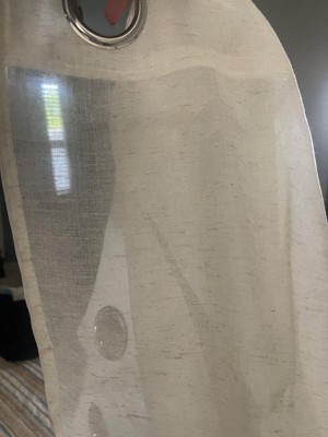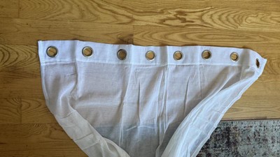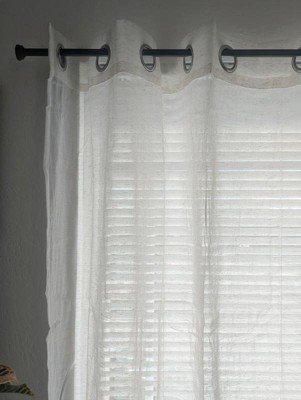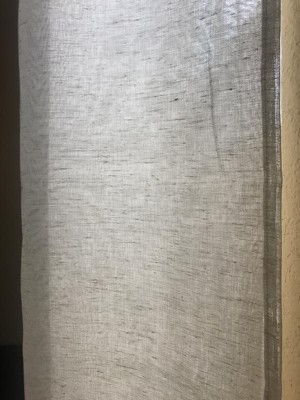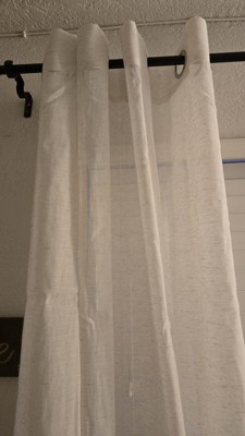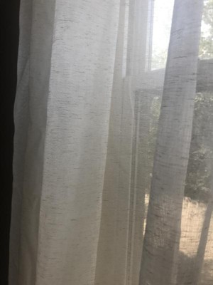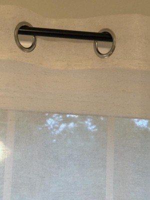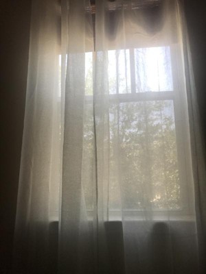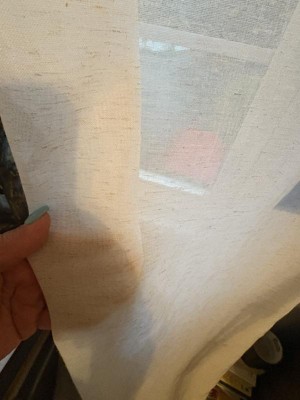 Good sheer curtain for the right need. The panel is a nice light cream color with natural flecks. The stitching on the seams is a little loose so might degrade if used extensively. The open rivets for placement onto rod are nice and large for a variety of rod diameters or styles. Good for use in a double layer with a black out curtain so you could choose sheer or black out depending on purpose.