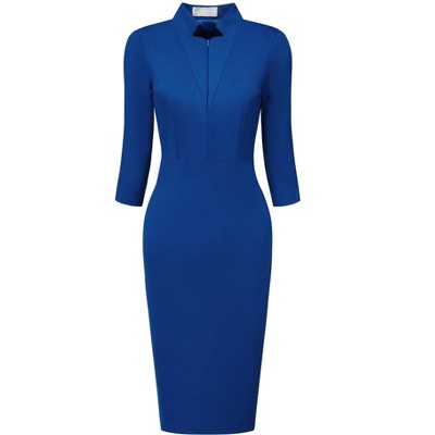 Hobemty Women's 3/4 Sleeve Work Boat Neck Elegant Business Sheath Dresses Small Royal Blue