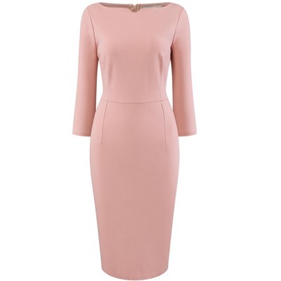 Hobemty Women's Flare V Neck 3/4 Sleeve Elegant A Line Midi Work Dress Pink Large