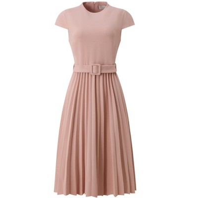INSPIRE CHIC Women's Round Neck Sleeveless Zip Front Belted Fit Flare Work Dresses