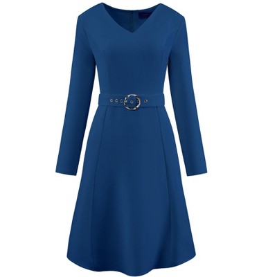 Keep your look professional and stylish in this dress from Hobemty, featuring a mock neck, long sleeve, button up, belted, button cuffs, A-Line and flare hem. Pair with high heels for an elegant office look. Focused on Ladies' Formal Wear - This dress can be a perfect addition to almost any outfit from formal to daily wear, great for work, meeting, office, businesses, work, party, cocktail, wedding, funeral, church, casual, daily dressing, etc.