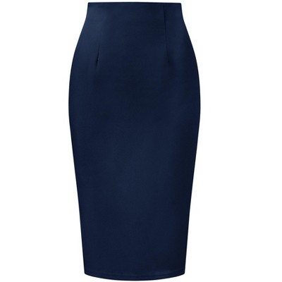 Hobemty Women's Wear to Work Elastic High Waist Pleated Bodycon Midi Skirts X-Large Dark Blue