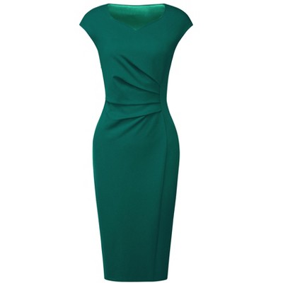 Hobemty Women's Work Square Neck Cap Sleeve Midi Sheath Pencil Dresses
