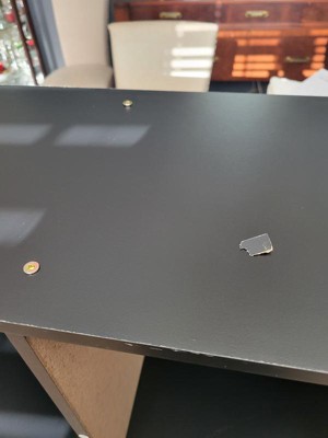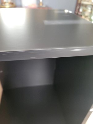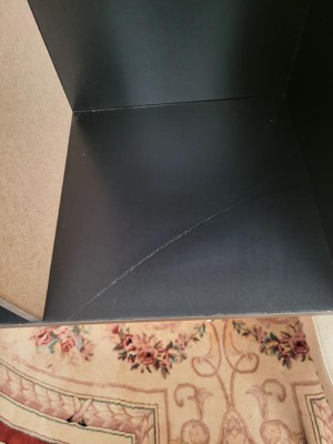 Came with chipped pieces it is not all black you can see the cheap light mdf or whatever it is underneath every shelf. Bad quality.