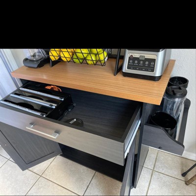 We recently moved to a new place and the kitchen was smaller than expected. This mobile island provided the extra storage we needed for groceries. On top of being practical is very stylish