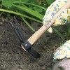 - Cultivator end of the tool is used to aerate and loosen soil.