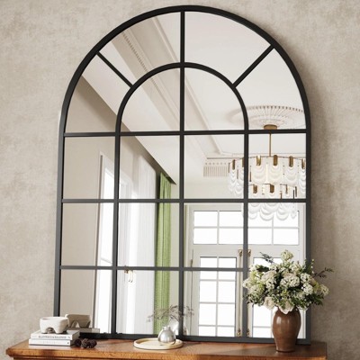 26" x 32" Hogan Windowpane Wall Mirror Black - Kate & Laurel All Things Decor: Modern Rectangular, No Assembly, Wood Frame