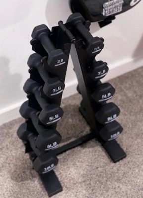 [This review was collected as part of a promotion.] Love this product! Package came very well packed with dumbbells individually boxed. Stand is very sturdy, made of metal, easy to assemble! The weights are covered with easy grip material and feel very high quality. Comes with a great variety of sizes from 2lb up to 10lb. I highly recommend this product!!!