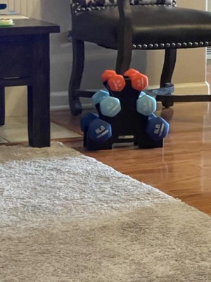 HolaHatha 3, 5, and 8 Pound Dumbbell Hand Weight Set with Storage Rack, Multi